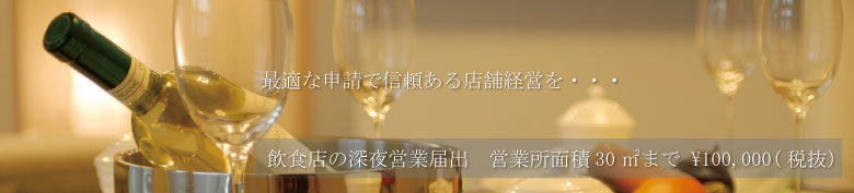 通常の飲食店営業許可(保健所)では深夜2時3時などの営業はできません。深夜営業の届け出を出すことで、経営に専念することができます。尚、届出には手数料はかかりません。